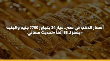 أسعار الذهب في مصر.. عيار 24 يتجاوز 7700 جنيه والجنيه يقفز لـ 53 ألفاً «تحديث مسائي»