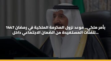 بأمر ملكي.. موعد نزول المكرمة الملكية في رمضان 1447 للفئات المستفيدة من الضمان الاجتماعي داخل السعودية