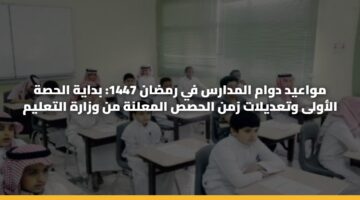 مواعيد دوام المدارس في رمضان 1447: بداية الحصة الأولى وتعديلات زمن الحصص المعلنة من وزارة التعليم