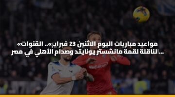 «مواعيد مباريات اليوم الاثنين 23 فبراير».. القنوات الناقلة لقمة مانشستر يونايتد وصدام الأهلي في مصر والسعودية