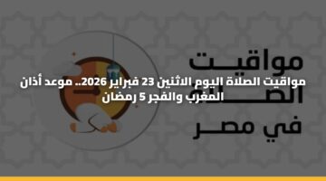 مواقيت الصلاة اليوم الاثنين 23 فبراير 2026.. موعد أذان المغرب والفجر 5 رمضان