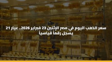 سعر الذهب اليوم في مصر الإثنين 23 فبراير 2026.. عيار 21 يسجل رقماً قياسياً