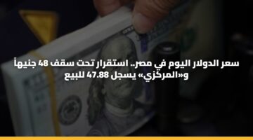 سعر الدولار اليوم في مصر.. استقرار تحت سقف 48 جنيهاً و«المركزي» يسجل 47.88 للبيع